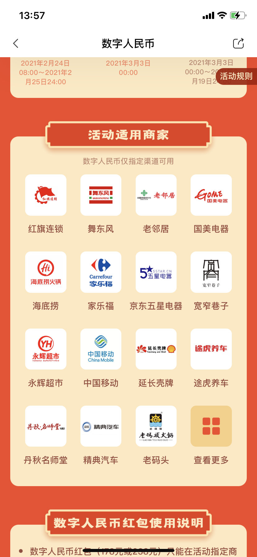 为了让用户更好地使用数字人民币红包,活动提供了11000余户指定商家。