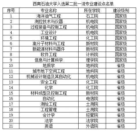 据悉,西南石油大学坚持“以本为本”,落实“四个回归”,强化专业内涵建设,不断提升专业办学水平和竞争力。截止目前,学校共有15个专业入选国家级一流本科专业建设点,18个专业入选省级一流本科专业建设点,入选国家级和省级一流本科专业建设点的专业数量占全校招生专业总数近一半。学校将进一步加强国家级和省级一流专业建设点建设工作,明确建设目标,制定建设规划,持续提升专业内涵建设,推动各建设点在教学改革、人才培养、师资队伍、教学资源、质量保障等方面发挥示范作用,实现学校专业建设整体水平持续提升。