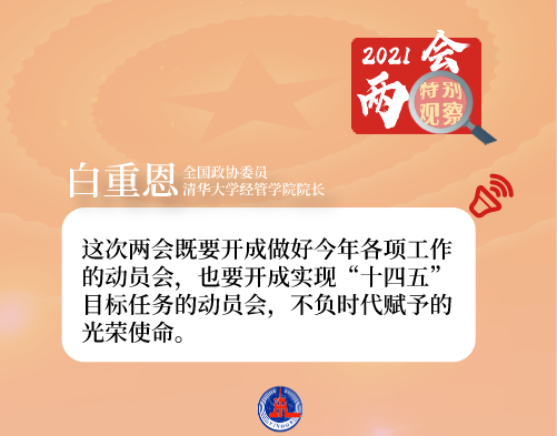 “这次两会既要开成做好今年各项工作的动员会,也要开成实现‘十四五’目标任务的动员会,不负时代赋予的光荣使命。”全国政协委员、清华大学经管学院院长白重恩说。