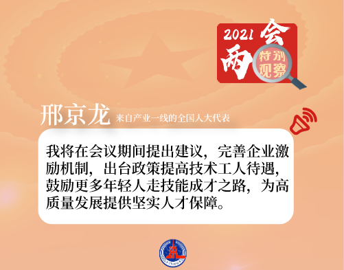 在来自产业一线的全国人大代表邢京龙看来,未来实现转型升级,关键在人。“我将在会议期间提出建议,完善企业激励机制,出台政策提高技术工人待遇,鼓励更多年轻人走技能成才之路,为高质量发展提供坚实人才保障。”