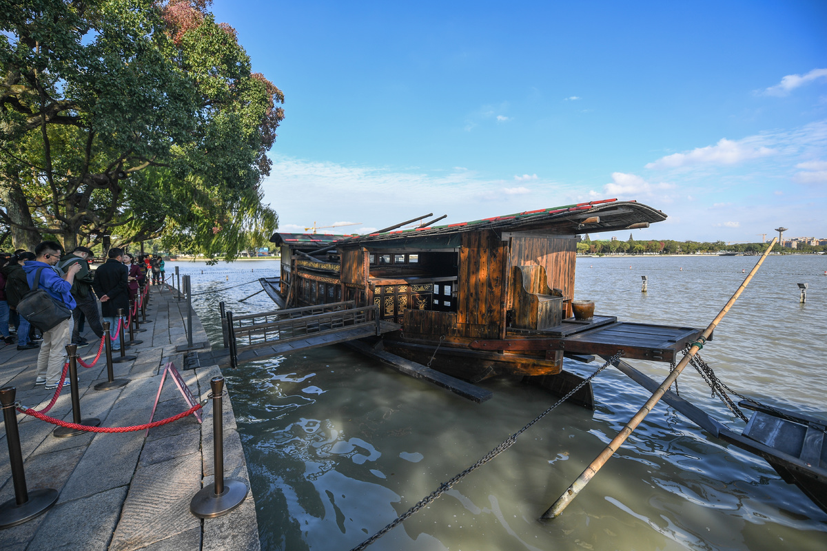 停靠在嘉兴南湖湖心岛的南湖红船(2020年10月27日摄)。新华社记者徐昱 摄