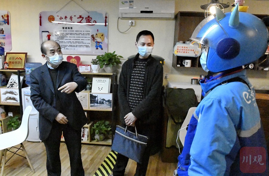 “你和公司签署劳动合同了吗?”“你怎么看待配送时间‘催命’的现象?”“希望得到哪些工伤待遇?”......2月24日下午,在位于成都市锦江区牛市口街道的“小牛哥·刹一脚”驿站内,住川全国政协委员、省人社厅一级巡视员张力抛出一连串“辣味”十足的问题,现场的快递(外卖)小哥坦率作答,公司负责人在一旁认真倾听。