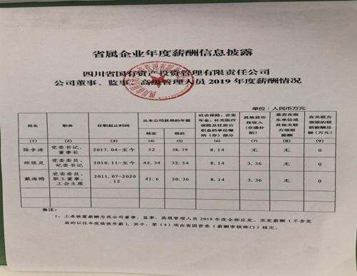 国企高管的薪酬待遇,一直为外界所好奇。3月3日,四川省国资委发布公开信息,集中公示出20家省属监管企业负责人2019年度薪酬情况。