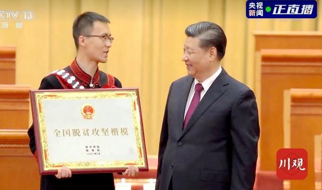 在前不久举行的全国脱贫攻坚总结表彰大会上,三河村被授予“全国脱贫攻坚楷模”荣誉称号。驻村第一书记李凯作为三河村代表,身着民族服装,从习近平总书记手中接过至高荣誉。