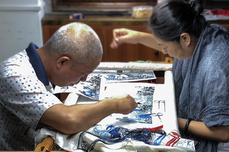 版画定稿,这还仅仅是第一步。蜀绣制作,才是其中关键。