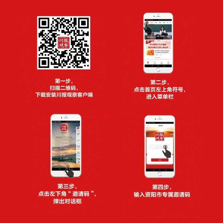 1.下载“川报观察”APP,点击左上方输入单位邀请码,普通市民可输入资阳市级邀请码M10000(以前已经填写过邀请码的用户,不必再填写)。