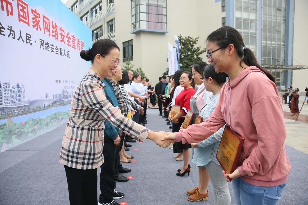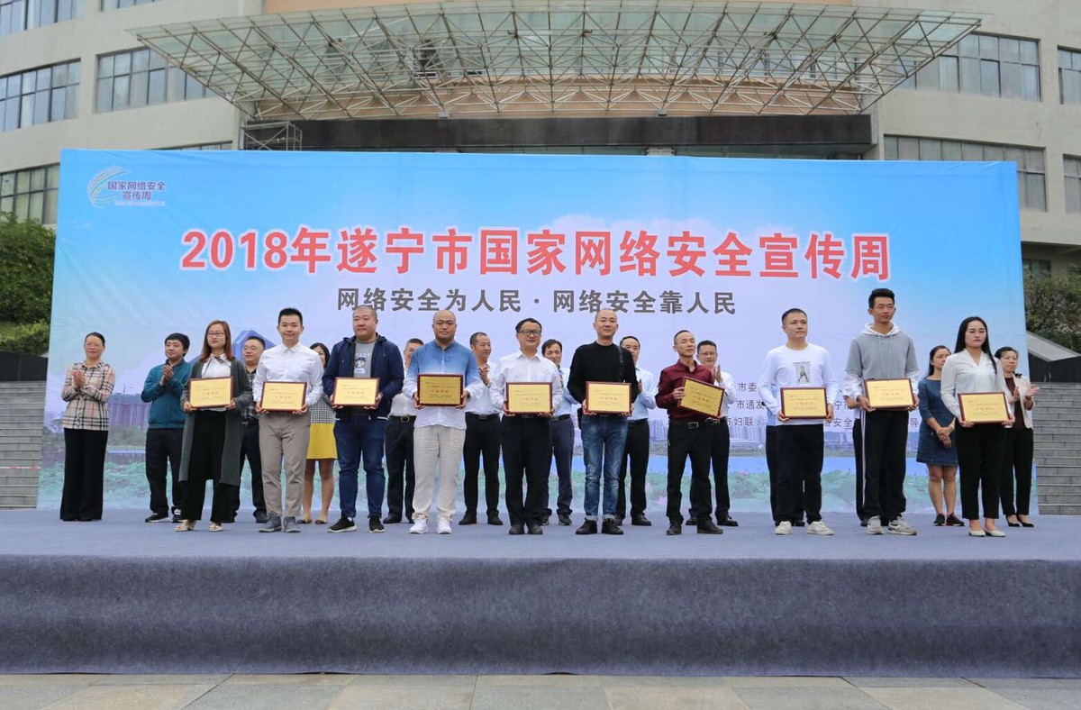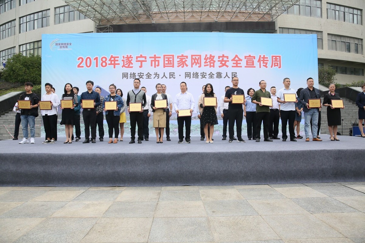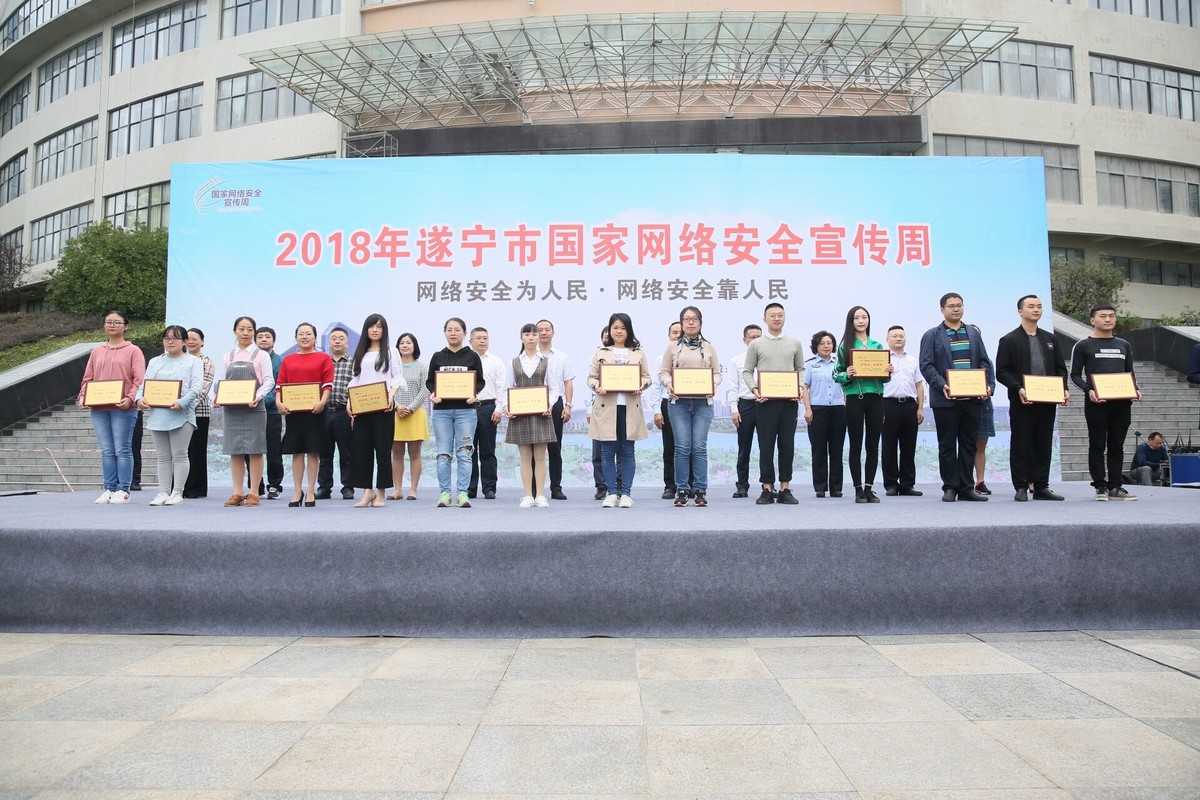 在网络安全宣传周启动仪式现场,通过前期宣传征集、网络投票、专家评审等多个环节的比拼,“遂宁好职工”“遂宁好巾帼”“遂宁好网民”“遂宁市十佳网红”等40位“好网民”走上前台,接过了象征荣誉的金色证书。