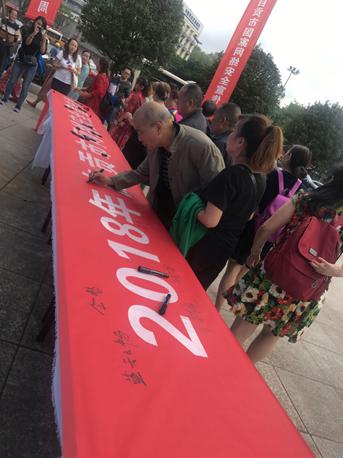 仪式结束后,网络安全宣传员、市民们还纷纷在主题条幅上签下自己的名字,争取做一个有高度的安全意识、有文明的网络素养、有守法的行为习惯、有必备的防护技能的“四有好网民”。