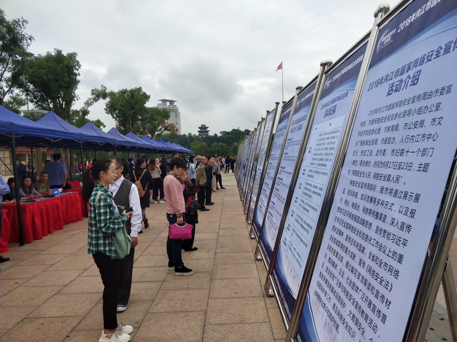 9月17日,2018年内江市网络安全宣传周活动在市中区大洲广场正式拉开序幕,本次活动主题为“网络安全为人民,网络安全靠人民”。当天上午,主办方在现场通过展板展示、发放资料、现场解答等多种方式,向周边的群众宣传网络安全的相关知识。