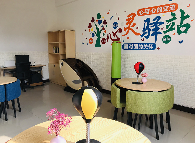 记者注意到,这个名为车长“心灵驿站”的房间内,配置有按摩椅、电脑、解压书籍、解压挂画、解压器具等。心理疏导室集谈心谈话、静心、阅读、运动、情绪波动疏导、听音乐等功能于一体,员工可自愿选择体验,或是进行游戏解压、或收听舒缓音乐放松心情,或是与管理人员进行无障碍沟通交流。