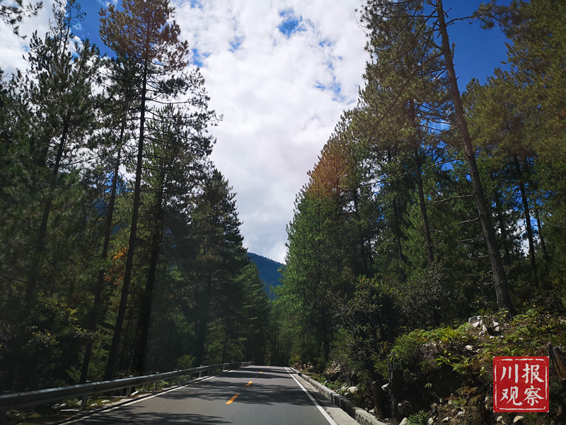 一跨入波密境内,G318国道沿线的道路两旁茂密而又挺拔的云杉、柏树,让我有点好像又回到了天府之国的感觉。