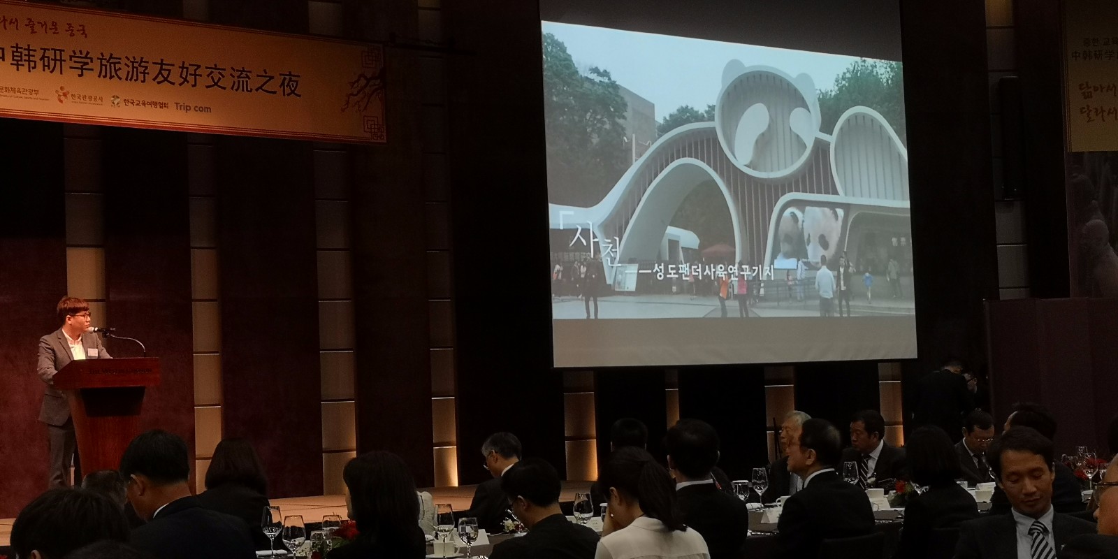 9月17日晚,“中韩研学旅游友好交流之夜”活动在韩国首尔举行,四川旅游营销团带着熊猫等四川元素亮相,并在活动现场布展。本次活动由中国文化和旅游部主办,来自中国四川、内蒙古、山东、陕西等15个省市区旅游主管部门负责人及旅行社代表,韩国国家文化体育旅游部、韩国教育旅行社协会、韩国教育界、旅游界代表等300余位嘉宾出席活动。