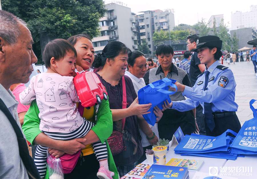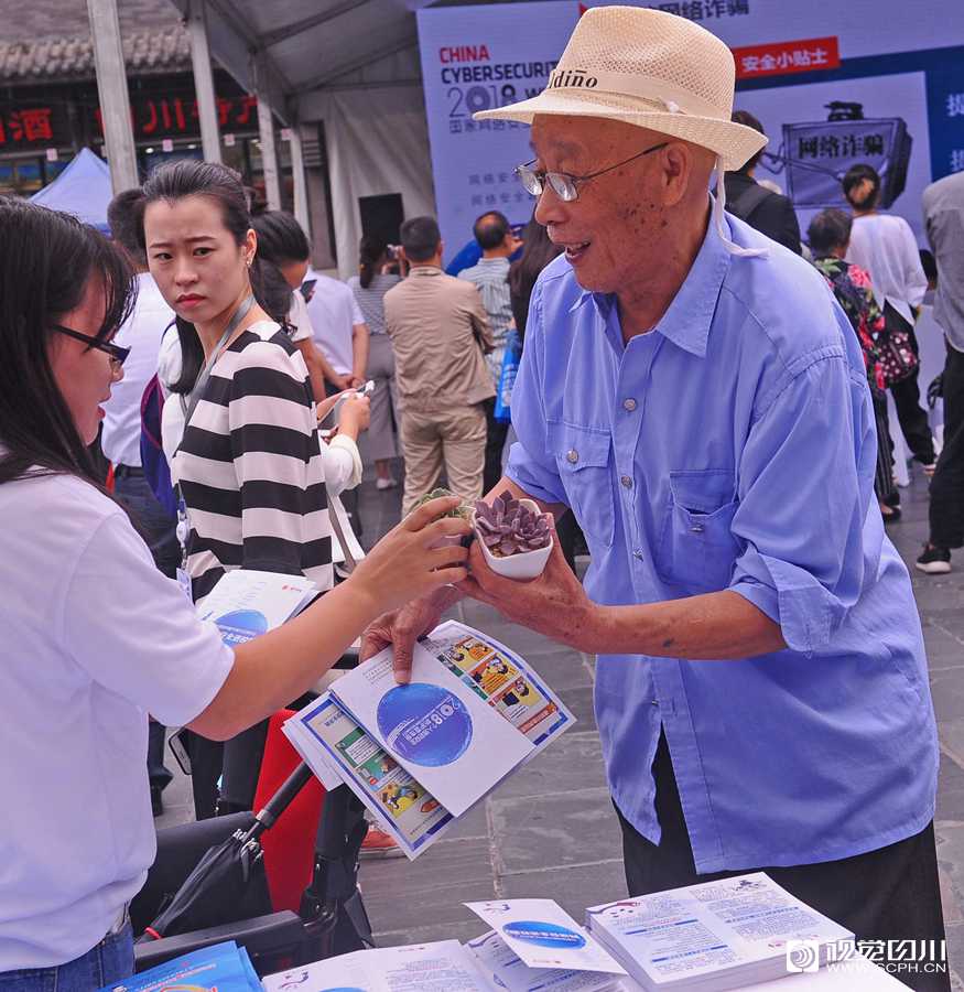 9月18日,成都市青羊区“2018年国家网络安全宣传周社区科普示范活动”在宽窄巷子东广场举行。以“网络安全为人民,网络安全靠人民”为主题的国家网络安全宣传周社区科普示范活动,吸引了社区众多群众和游客。公安民警、网络安全技术人员和网络安全知识达人还在活动现场,为大家分发网络安全防范知识相关宣传品,并为大家讲解如何防范网络电信诈骗等相关知识。