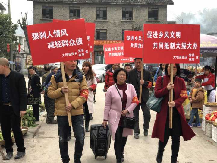 “绝大多数群众是很支持村规民约的,但是有极少部分群众怀着想收回之前赶出去人情的心思,依然想着大操大办。”大坝苗族乡民政办主任张孟林坦言道,对此,乡政府组织了劝导队,联合派出所、食药所等进行联合劝导,通过耐心宣传教育,最终也得到群众的认可和支持。据统计,截至今年8月,该乡共收到200余起申请,成功劝退了173起拟办酒席。