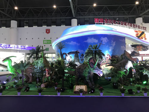 “快看,这个恐龙会动。”展馆大型场景还原——恐龙乐园内几只仿真恐龙,引得众人纷纷驻足拍照,更惊呼“会动”、“会叫”的恐龙特别有趣。独具特色的仿真恐龙模型,它让人们重新走进神秘的“远古时代”,感受科技的魅力。迄今为止,自贡制造的恐龙已出口至美国,加拿大,英国,泰国,澳大利亚等超过100多个的国家和地区,深受当地群众的喜爱和好评。