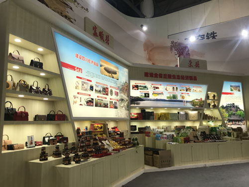 在展区位的右方,这里绝对是女人们的“购物广场”,吃货们的“天堂”。品牌包包、冷吃兔、火边子牛肉、香辣酱、豆花蘸水…一一展现着具有浓郁的地方特色。自贡,不仅是盐之都、龙之乡、灯之城,还是食之府,自贡的盐帮菜是唯一一个为地级市所独有的菜系。北京、上海,包括美国等地都开了很多盐帮菜的餐馆。“舌尖上的中国”对自贡盐帮菜进行了隆重推介。