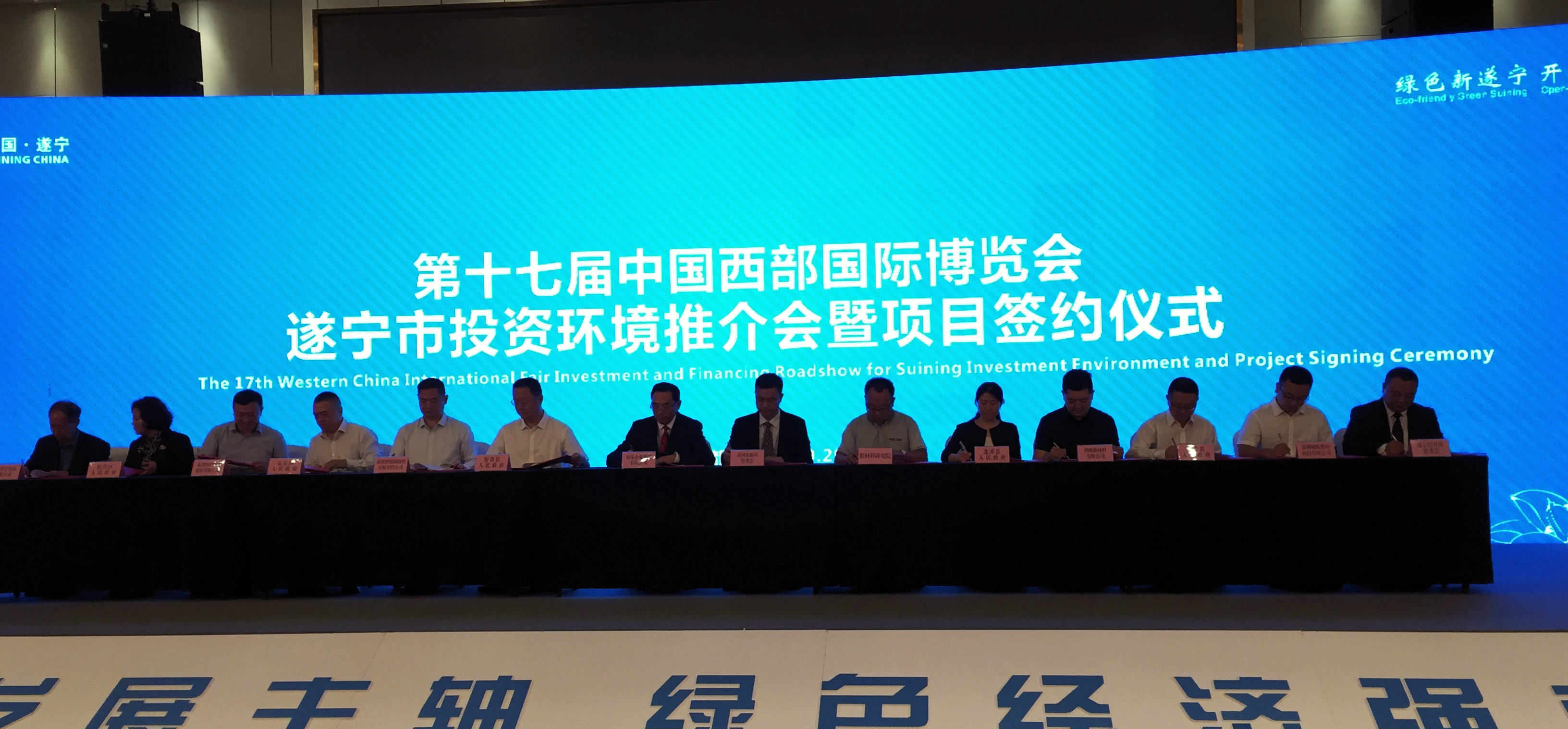 借力第十七届中国西部国际博览会,9月20日下午,遂宁市在成都举行投资推介会暨项目签约仪式,吸引全国各地百余名客商参加。当日,遂宁共签约项目22个,投资总额473.1亿元,涉及电子信息、新材料、油气化工等多个产业。