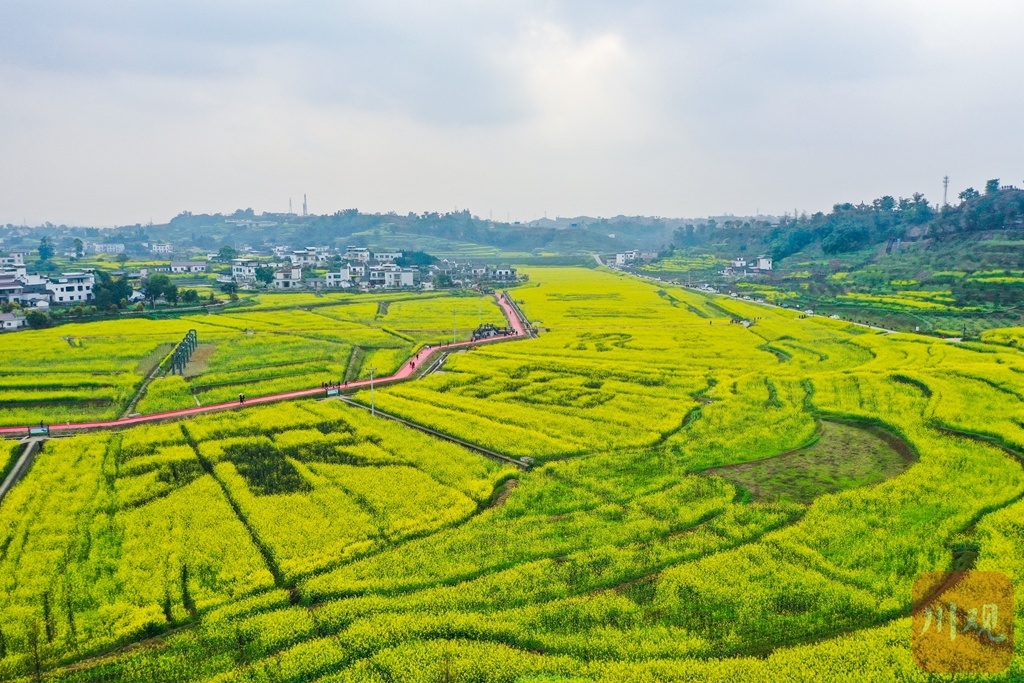 又是一年春来到,三月初春,泸县谭坝村化身成一望无垠的金色花海,成片的油菜花田吸引大量游客前来“打卡”。