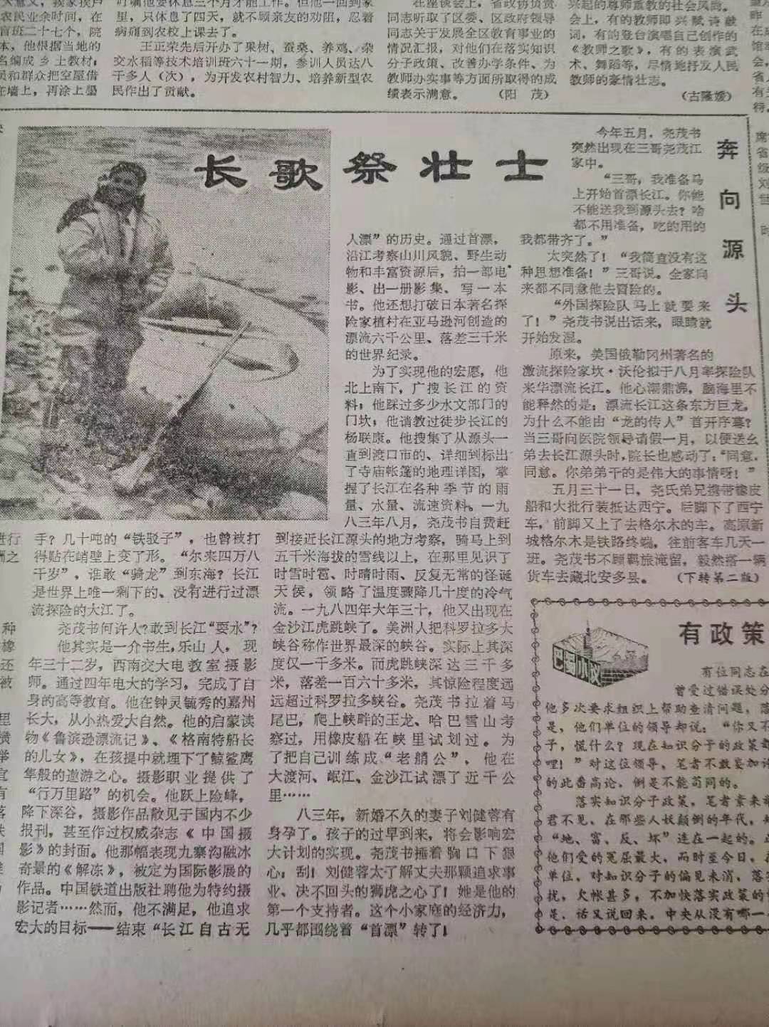 如果说尧茂书像时代空气里的一颗火星,四川日报则捕捉到这颗火种。那一则通讯及后续报道,在很大程度上直接推动1986年四川省地理学会向全国招募漂流勇士,组建“中国长江科学考察漂流探险队”。