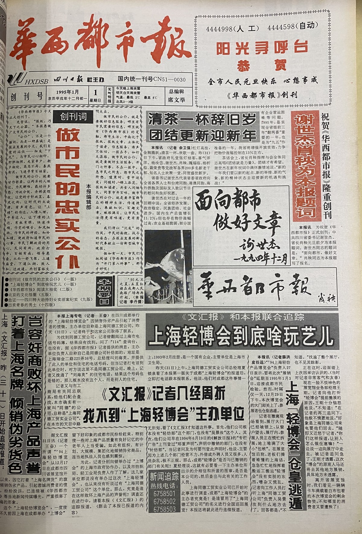 1995年1月1日,完全不同于以往报纸面孔的一张新型报纸《华西都市报》在红星路上应运而生。海纳百川,《华西都市报》的办报理念是“走新型晚报的路子,吸收各家晚报的长处,嫁接各类畅销报的优势”。创办第一年,《华西都市报》发行超过10万份,创下了创刊当年便盈利的历史纪录,呈现出强劲的发展势头。