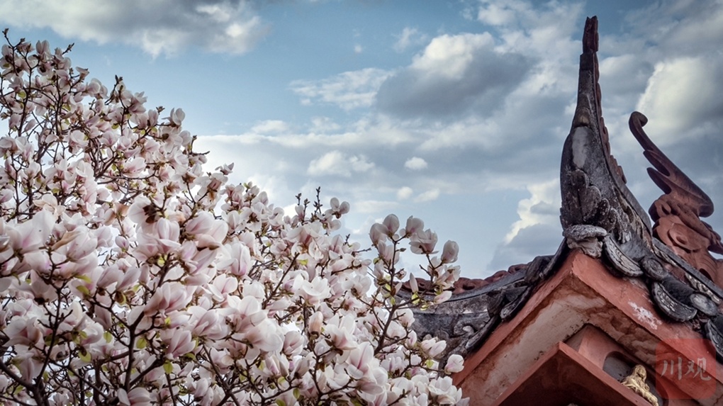 三学山自唐宋以来即已驰名川西,历代均为文人宴集、士女游览之胜地。春日古寺山花烂漫,泉壑优美,尤其经过春雨的洗礼,更焕发出不凡的魅力与生机。这里的一砖一瓦,都是民族文化的基因,其生命轨迹让人为之叹服。