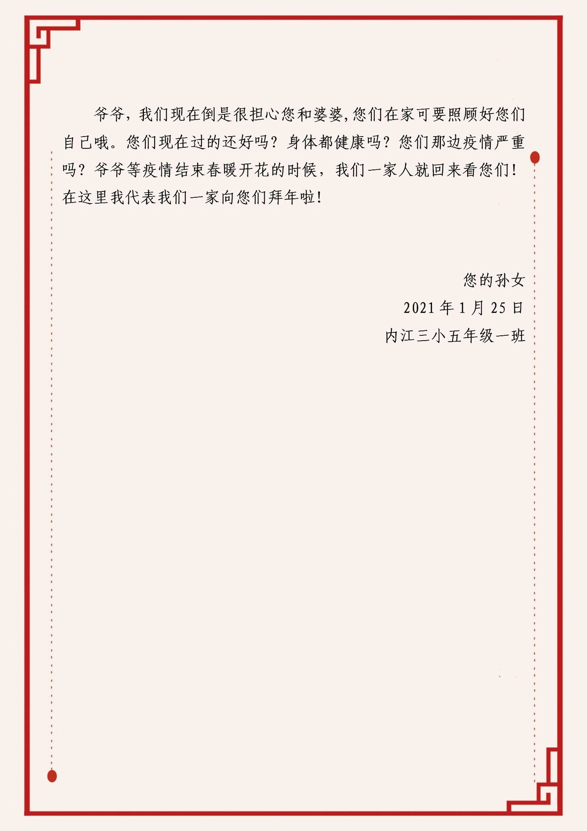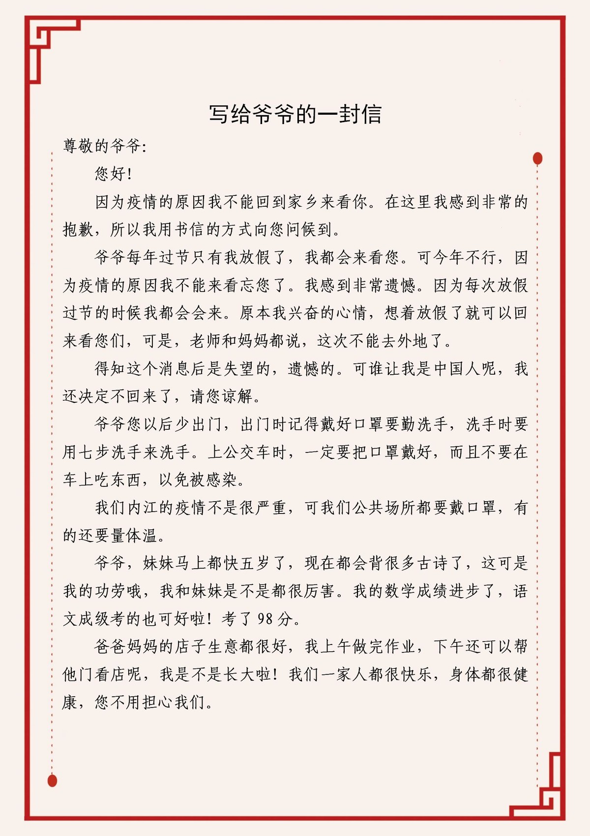 作品十《写给爷爷的一封信》