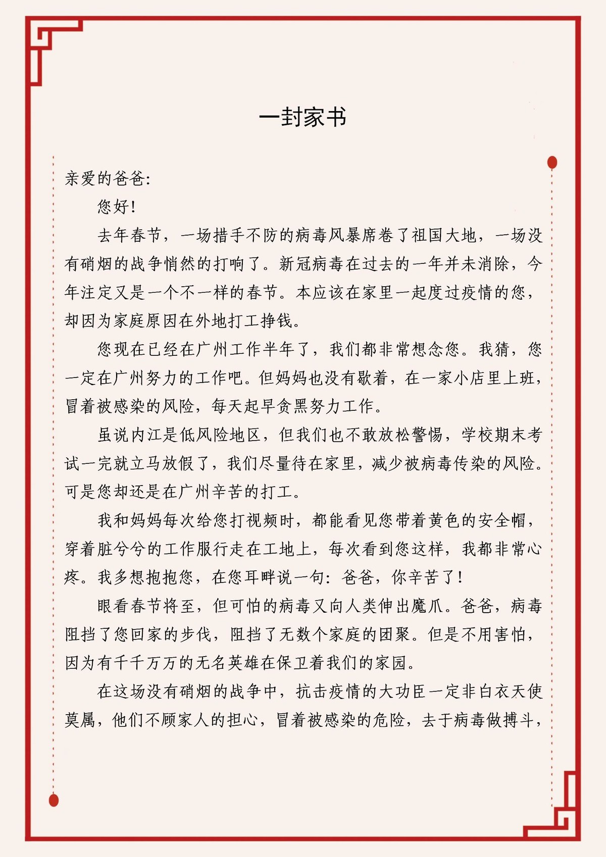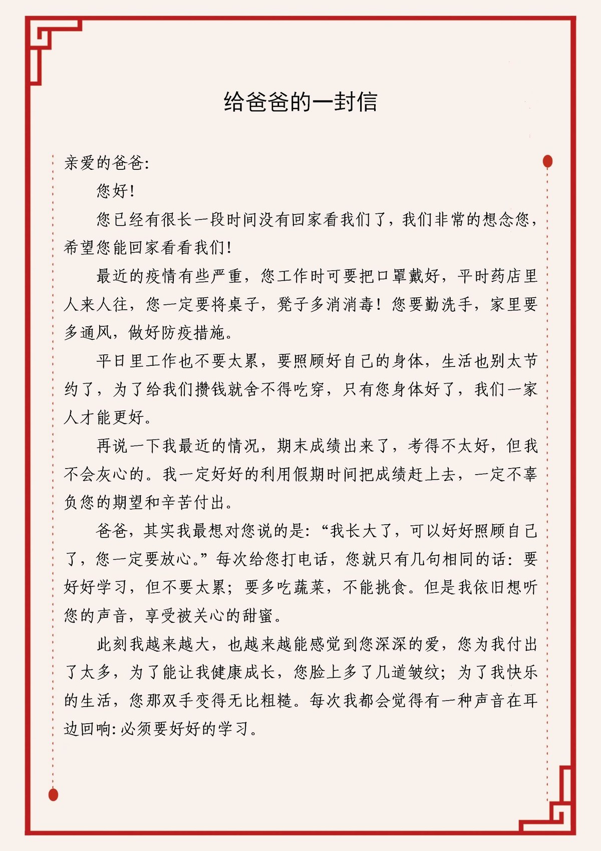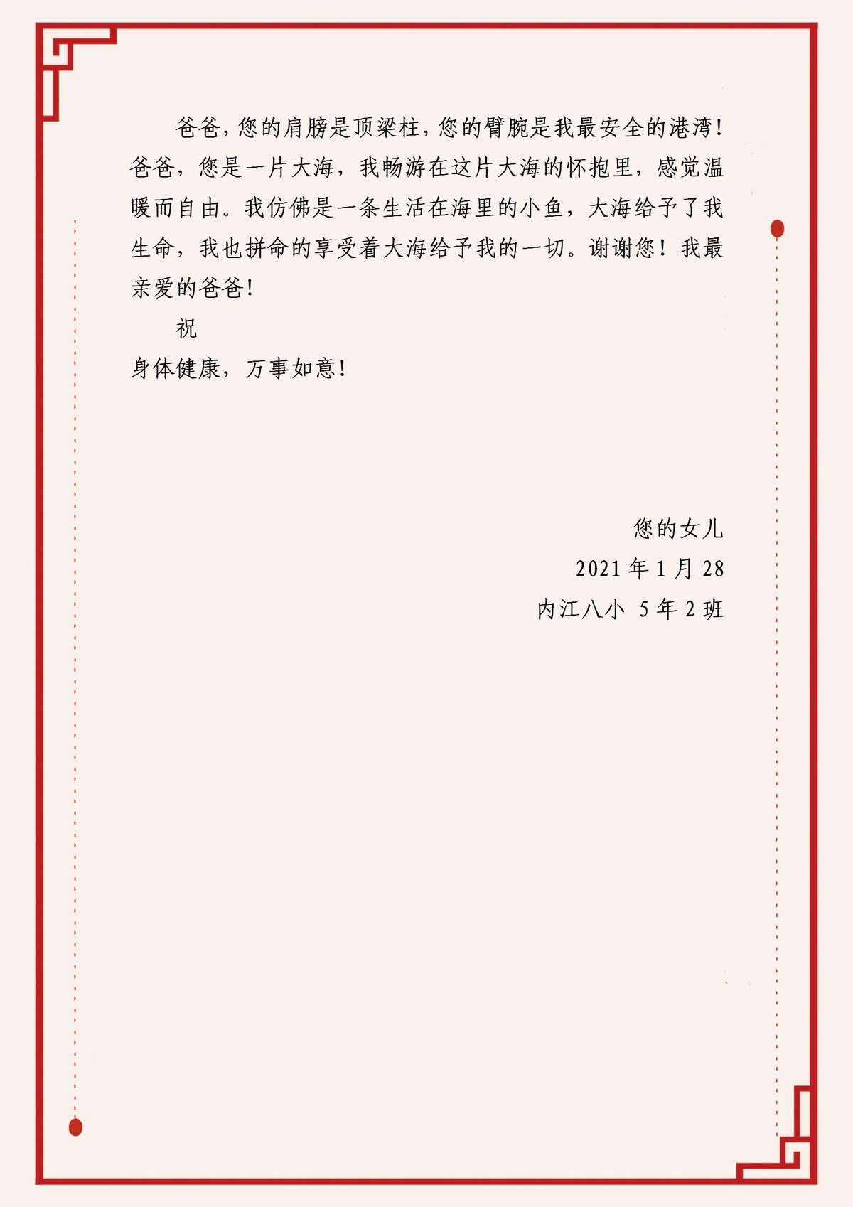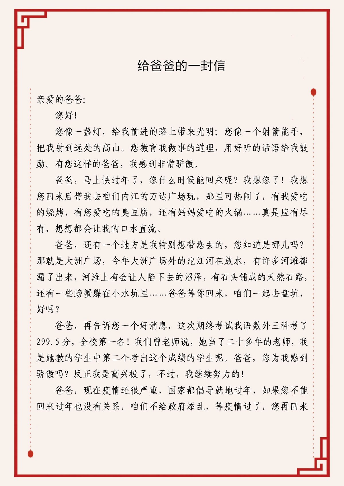 作品八《给爸爸的一封信》