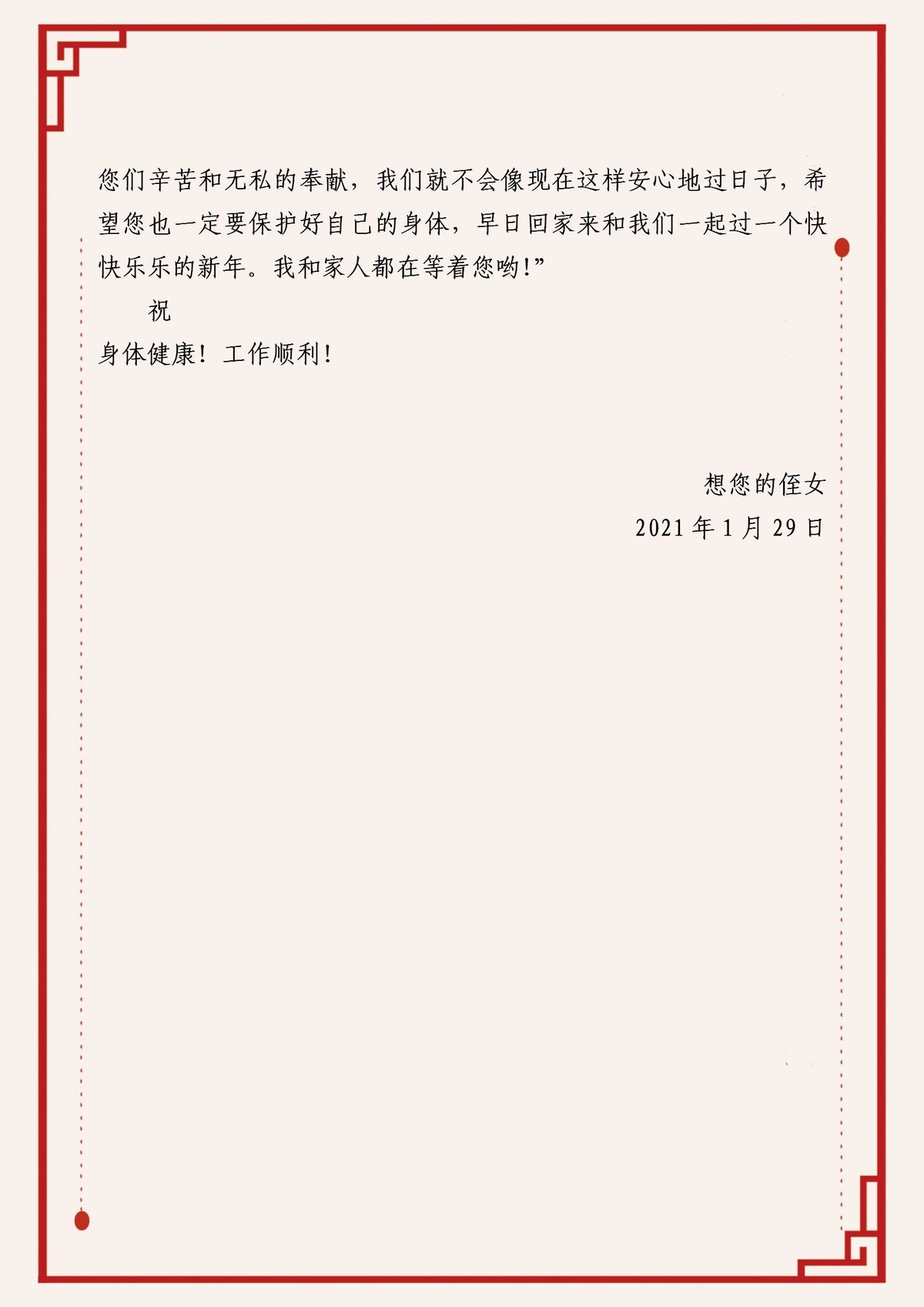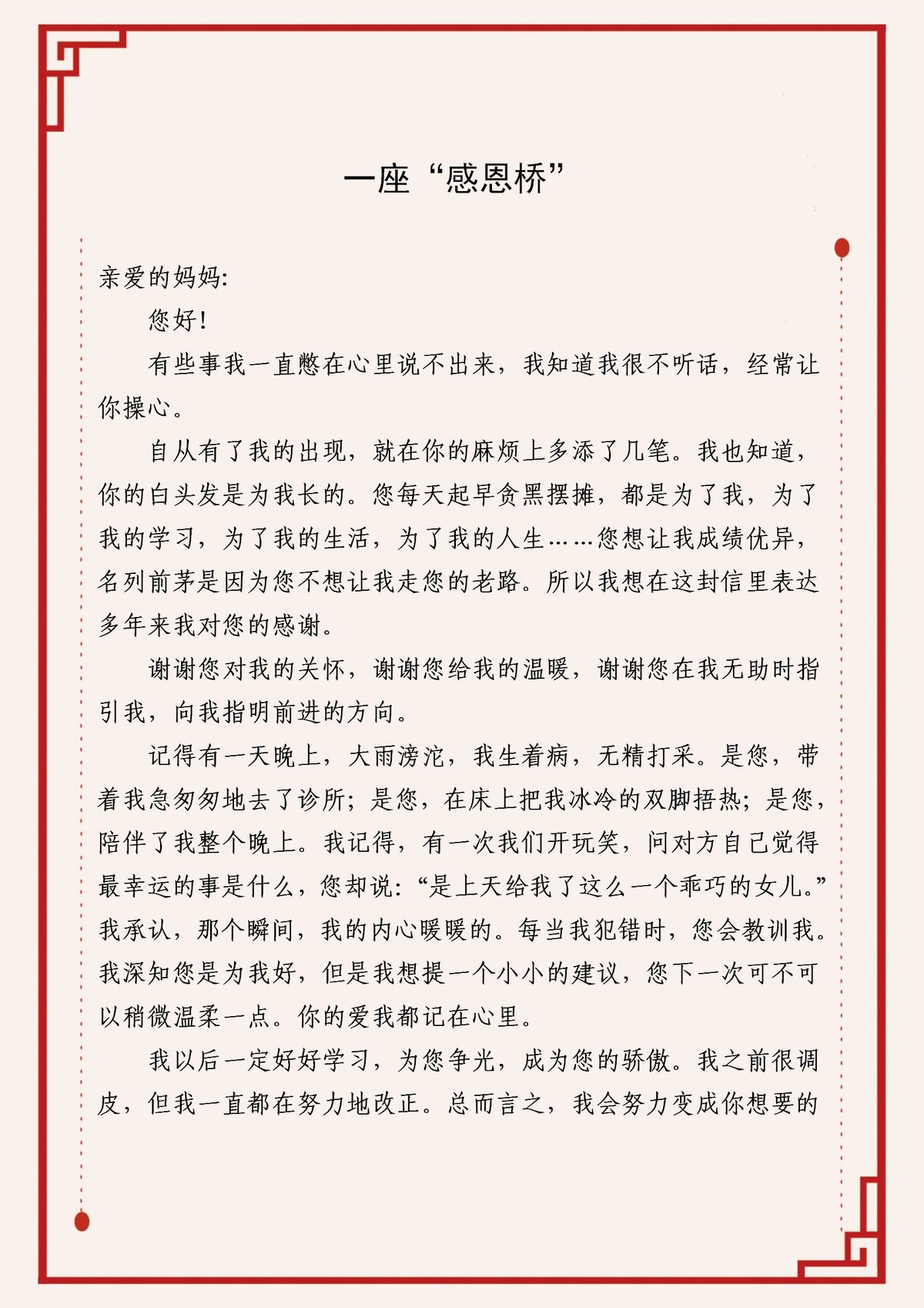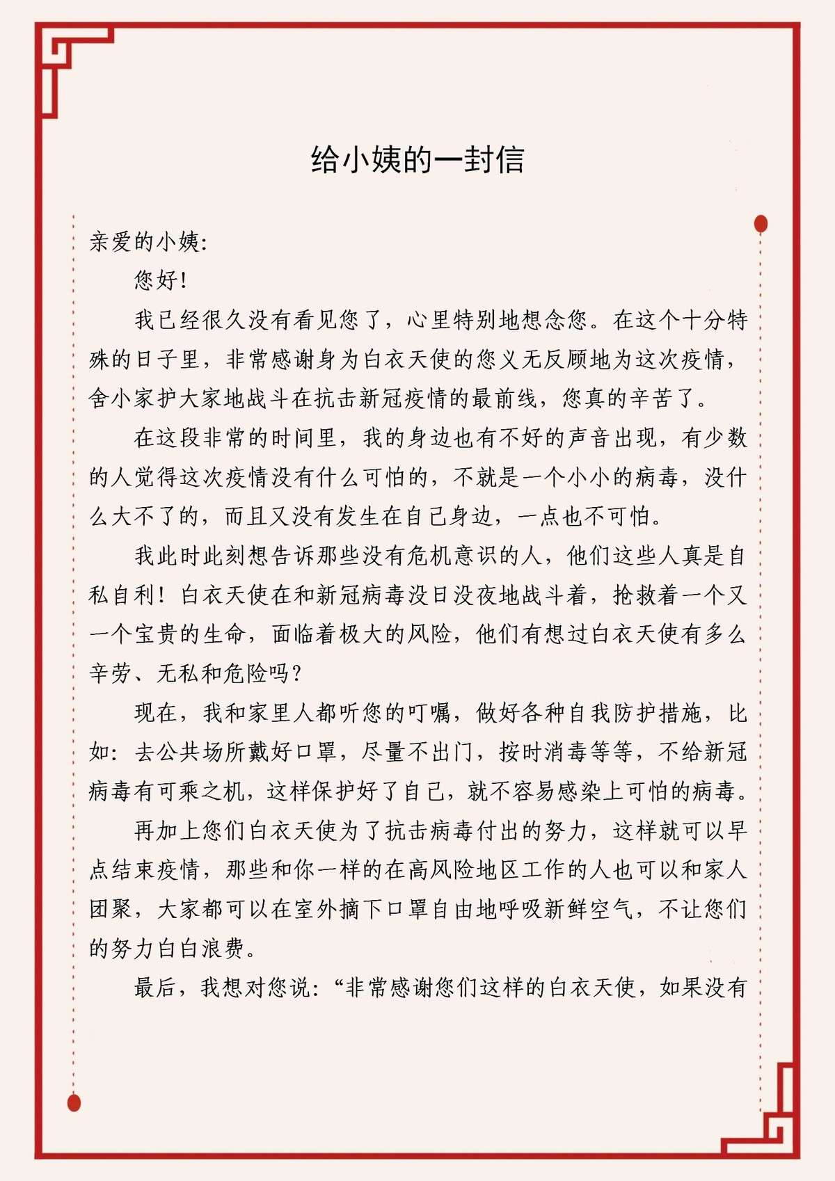 作品一《给小姨的一封信》