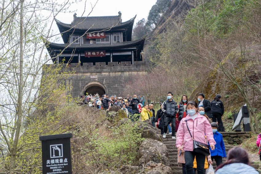 据统计,在执行“75%”限流政策前提下,剑门关景区妇女节接待游客数量超同期一倍。而就在今年春节假期,剑门关景区游客数量已恢复至同期67%,高于春节期间四川省的平均水平。相关负责人介绍,后疫情时代,越来越多家庭出游首选剑门关的背后,是剑门关景区坚持文化自信,以文化活化为引擎,不断创新消费场景新体验,激发消费新动能、提振文旅市场的努力与坚守。