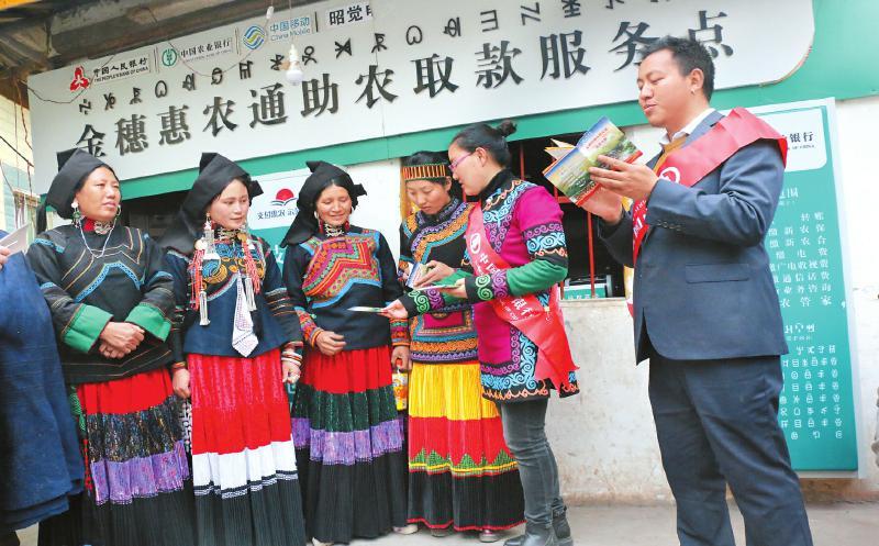 凉山昭觉农行客户经理在悬崖村宣传精准扶贫惠农政策。