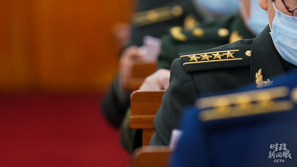 △十三届全国人大四次会议第二次全体会议现场的解放军代表(总台国广记者李晋拍摄)