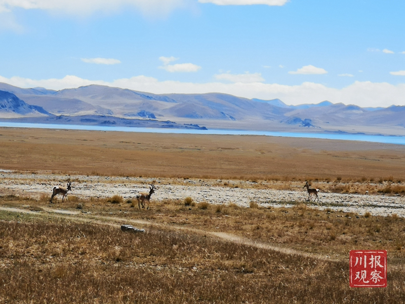 沿着湖岸向东前行,走过路旁的一条便道,就踏车驶上了羌塘大草原了,没有路标,一路上原生态的自然风光掠过车窗,窗外是与汽车赛跑的野驴群和藏羚羊,湖面时而飞过几只黑颈鹤,偶然遇上的当地居民,总是向我们报以灿烂的微笑,这一切都让我们觉得这趟颠簸之旅是值得的。