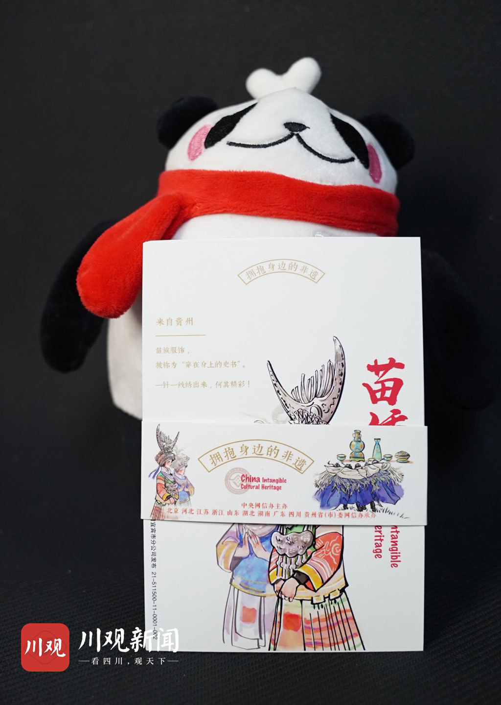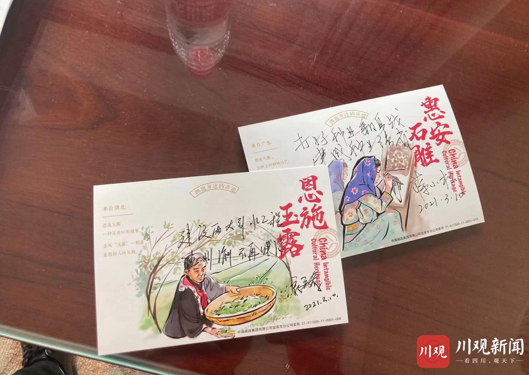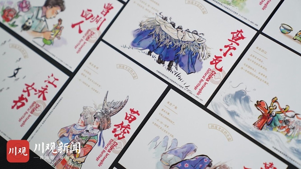 经过半年的筛选和专业设计,川观新闻系列原创手绘明信片“拥抱身边的非遗”于2021年全国两会期间正式上线,同时在成都“熊猫邮局”和四川省内部分邮局发售。