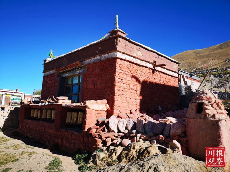 一个上午,随意在村子里走走看看,越看越喜欢这个简朴传统的小村庄。文布南村的房子大多采用石头和泥土夯建而成,村里有一条主路,路两侧是民居,排列得井然有序。村子后山上的转经塔、玛尼堆,是村民每天去造访的地方。