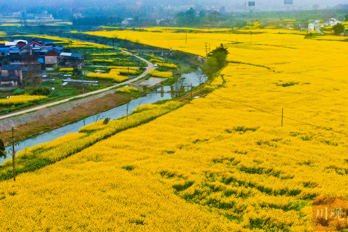 3月10日,内江市威远县新场镇的油菜花竞相绽放,将田野染成一片金色,美不胜收,乡村处处弥漫着浓浓的春意。