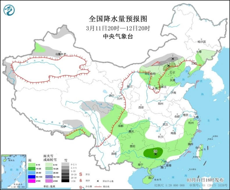 今日天气:新疆北疆北部和沿天山地区、吉林东部、川西高原北部等地部分地区有小到中雪或雨夹雪。辽宁东部和南部、华北中北部、江南东部和南部等地部分地区有小雨。