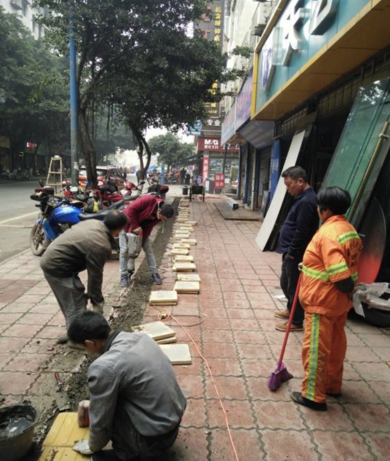 记者在龙泉街头看到,几名市政工人正蹲在人行道上修补路面,“每天都有人在街上巡逻,有一块盲道缺失或者松动了,我们就会马上赶来维修。”维修师傅说道。