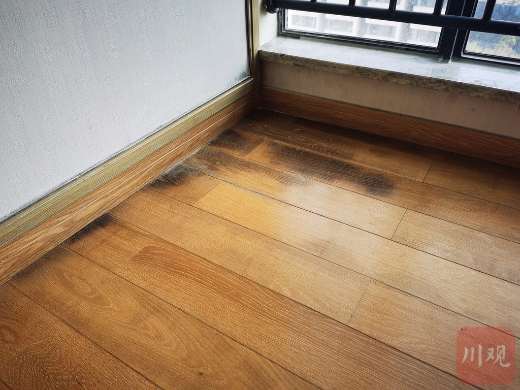李琴收验房过程中拍摄的木地板发霉;