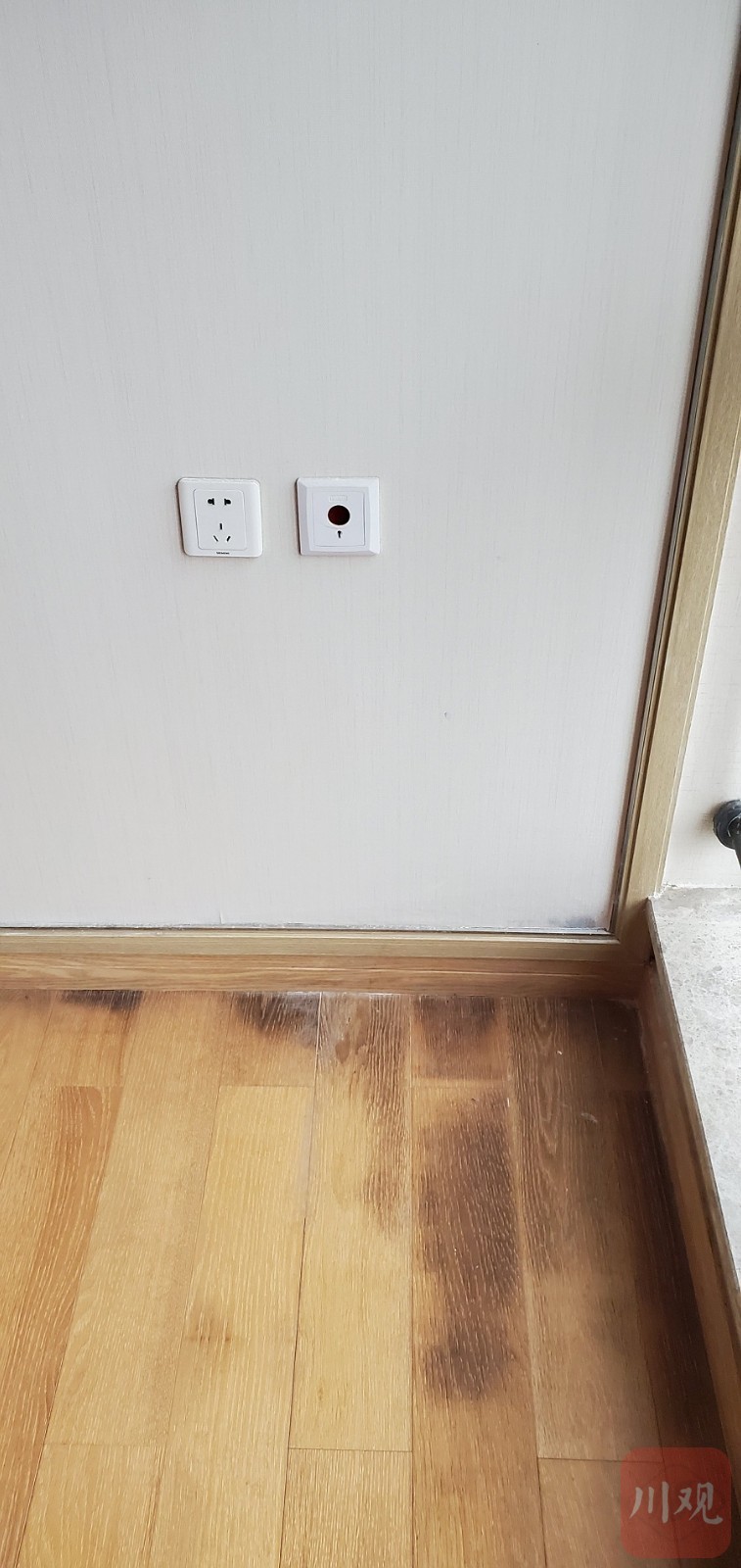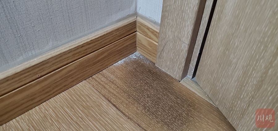 李琴说,根本问题没有解决,卧室内水痕仍然明显,用手摸墙,仍然明显感觉湿润,地面木地板角落处再次返霉。