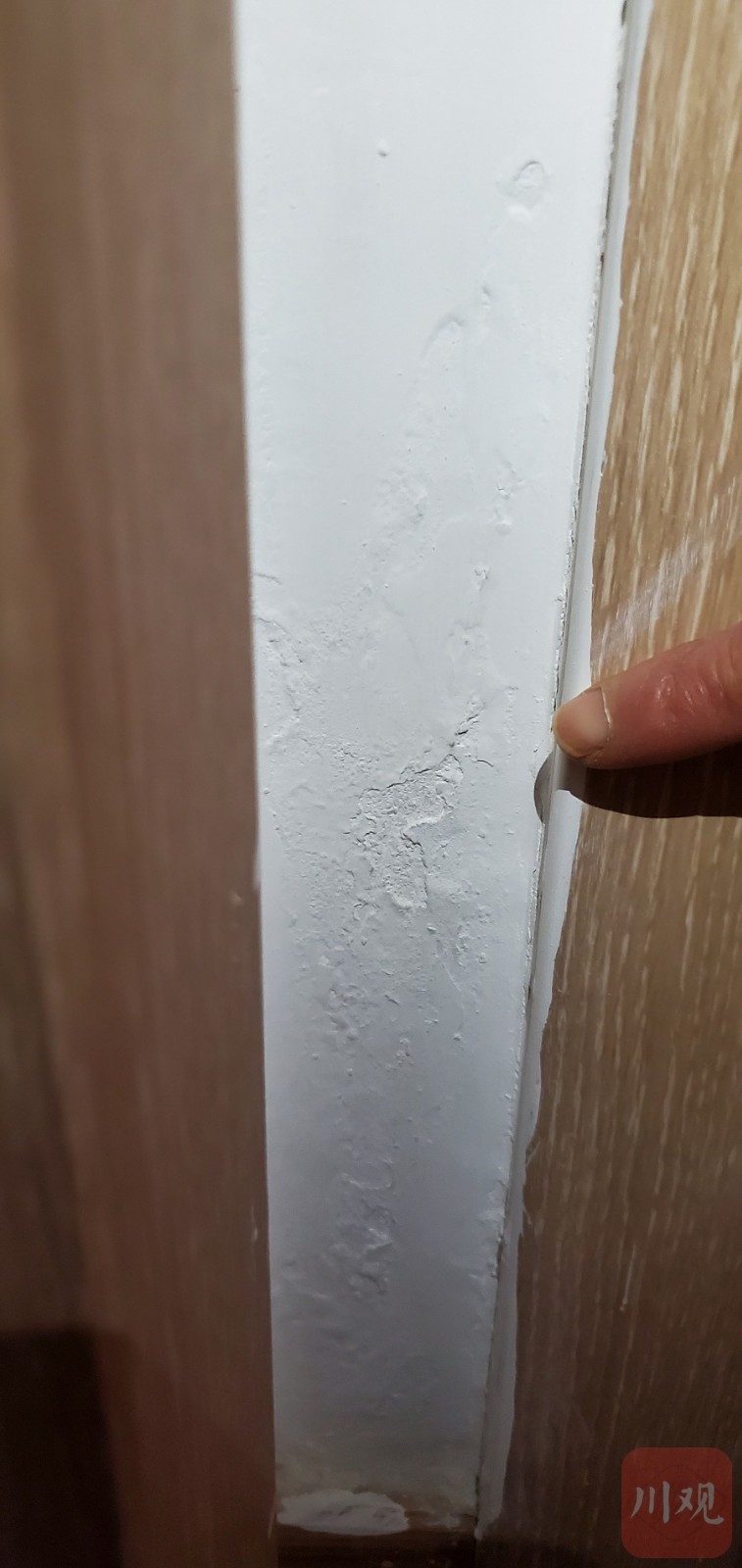一直拒绝收房,李琴说,是因为验房时,发现房子问题实在太多:墙面漏水、地砖裂纹、木地板发霉……