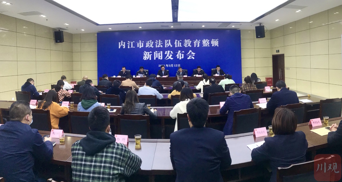 3月12日,内江市政法队伍教育整顿领导小组召开第一次新闻发布会,公开通报全市政法队伍教育整顿安排部署和进展情况。