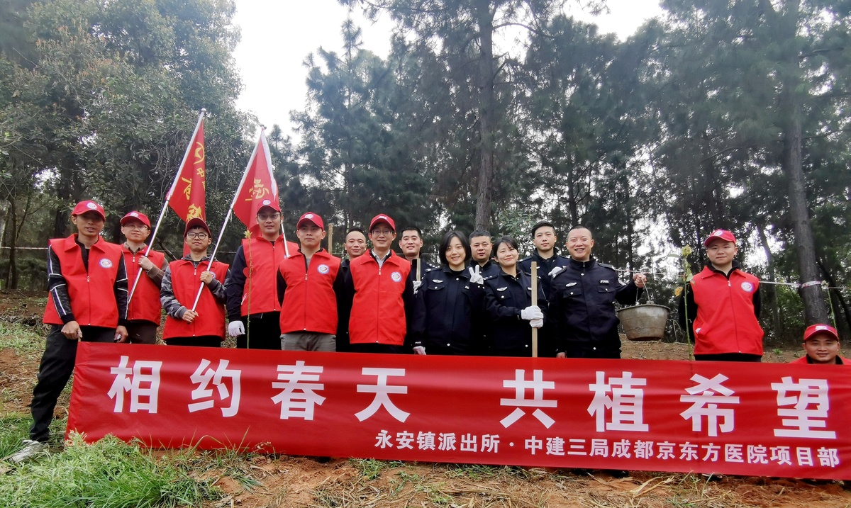 3月12日,是我国的植树节。当天,中建三局成都京东方医院项目部工会、成都市双流区永安镇派出所联合开展了一次以“相约春天、共植希望”为主题的义务植树活动。