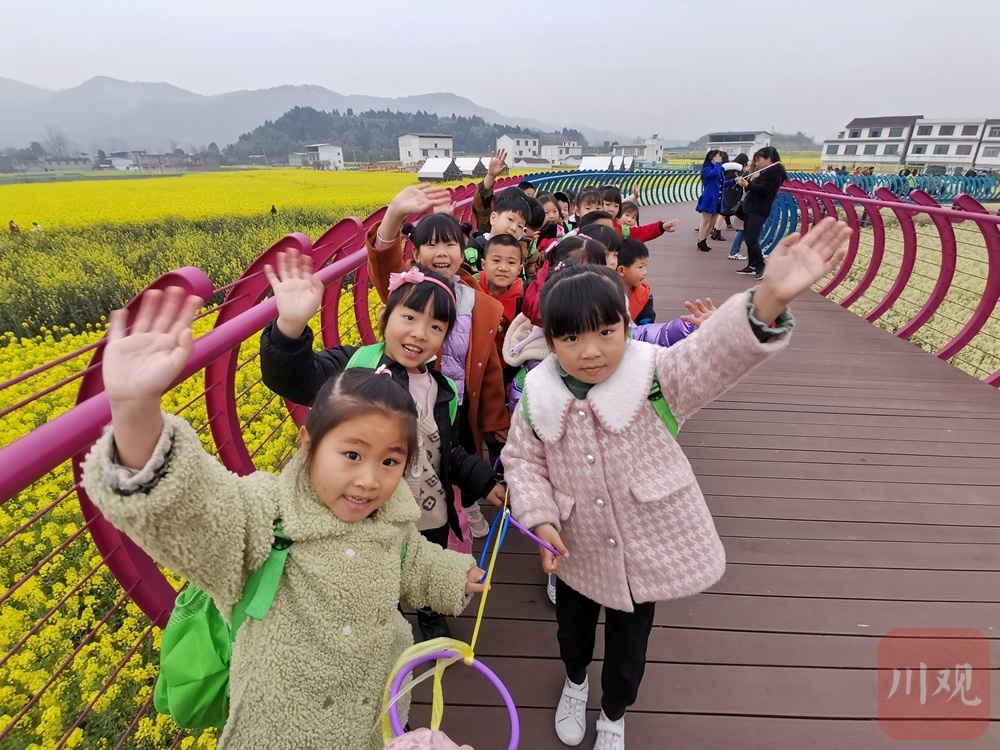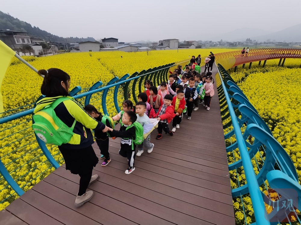 3月12日,春光明媚的中江县挂面村花开正艳,尤其是油菜花,开得金灿灿。当地的小学、幼儿园为让孩子认识自然,感受春天之美,组织孩子们走进大自然,踏青赏春。