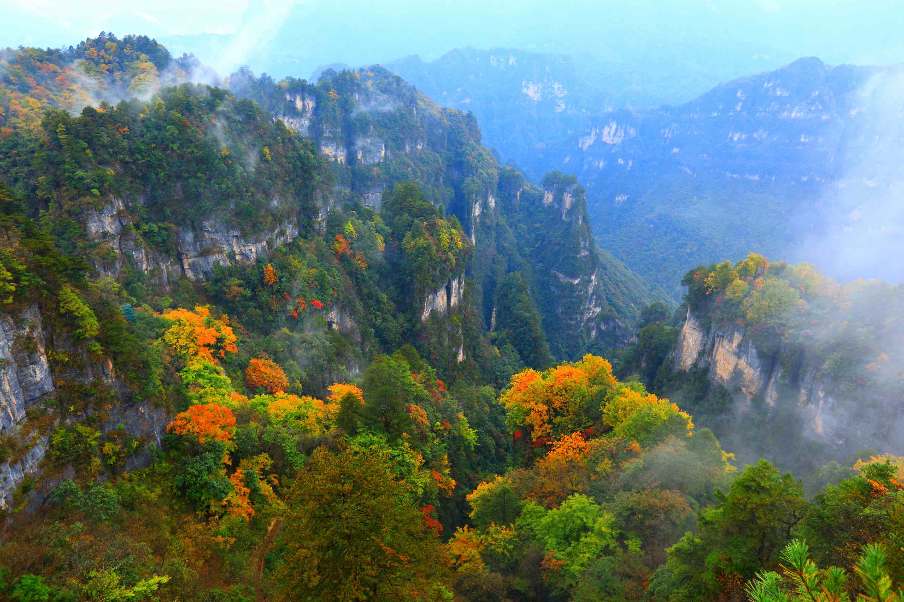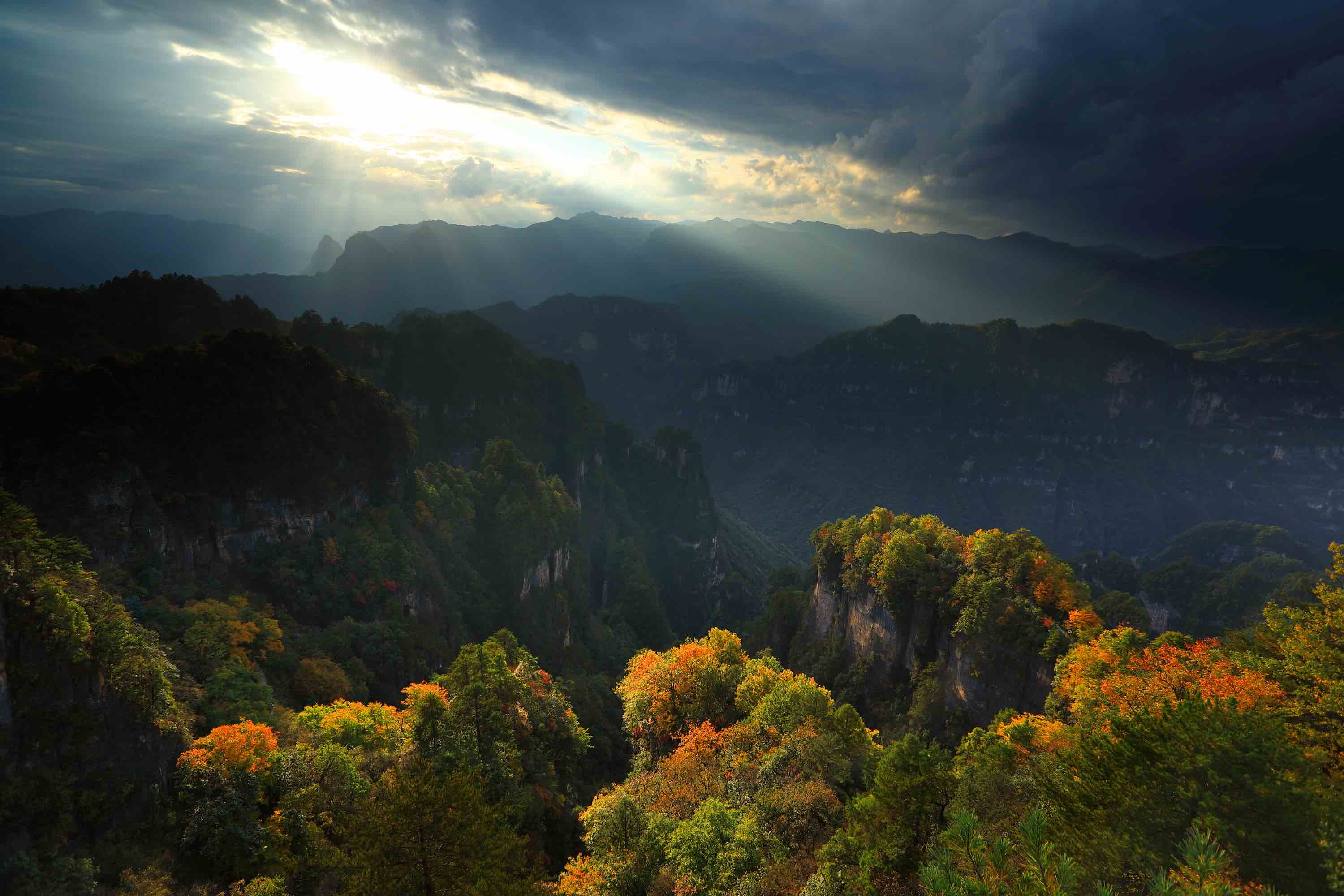 光雾山风景区位于川陕交界处,以奇特的喀斯特峰丛地貌、古朴的原生态植被、迷人的瀑潭秀水和峡谷风光为特色。这里被称为“中国红叶之乡”,常年云雾缭绕宛如仙境。深秋时节抵达这里,可看漫山红遍,层林尽染。