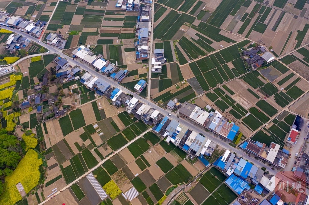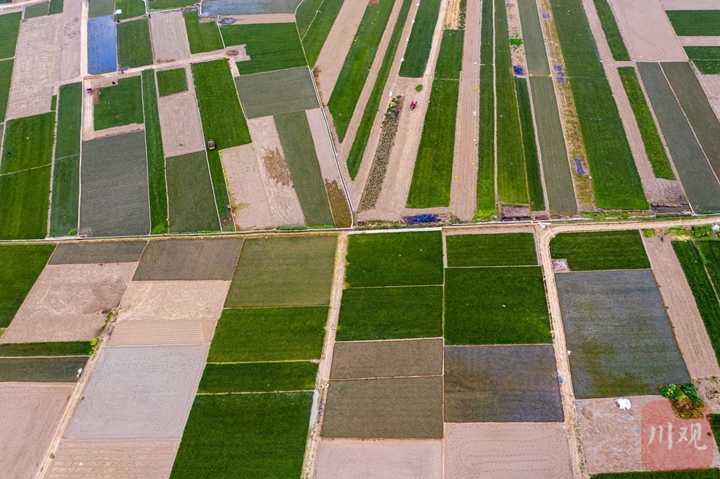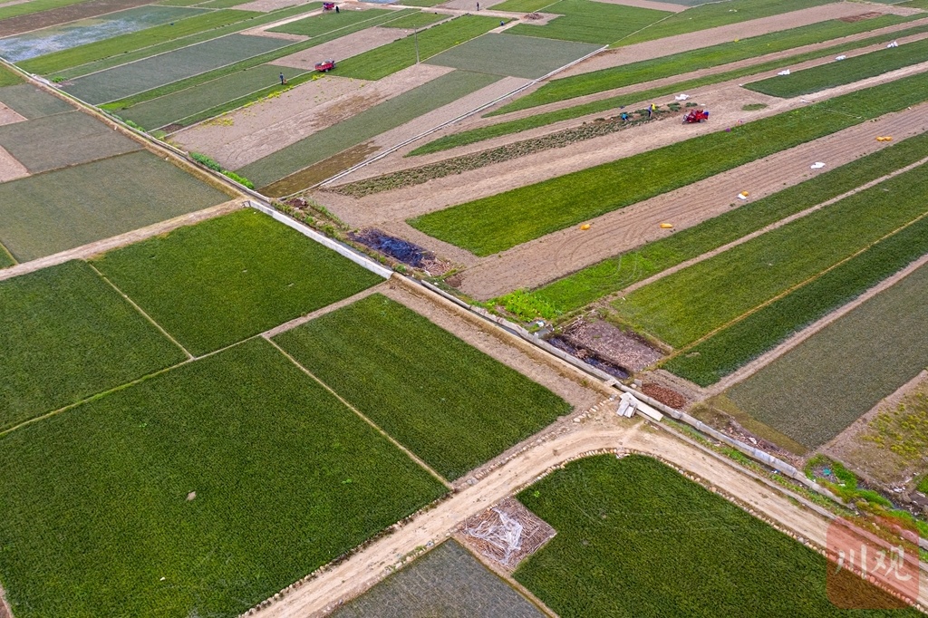 人勤春早,绵阳市三台县老马镇6500余亩麦冬进入采挖季,村民们都忙碌着收种麦冬。空中俯瞰,麦冬田与农舍共同绘出一副生机勃勃的新村画卷。