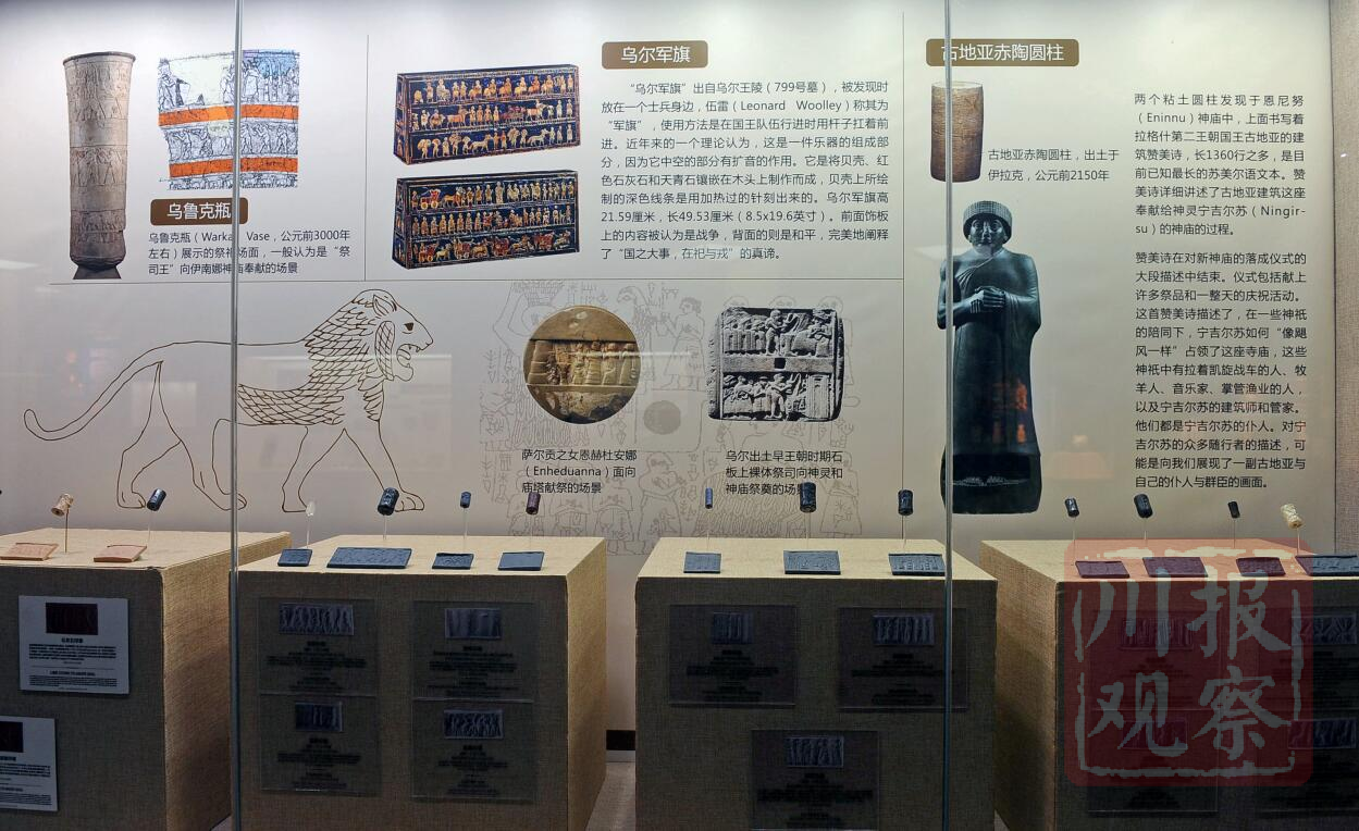 “由苏美尔、阿卡德、巴比伦、亚述等先后代表的两河流域古文明是世界上最早的文明之一;以三星堆文明为代表的成都平原古蜀文明是古代长江中上游的一大文明中心,是中华文明不容忽视的一个重要起源。”周静说,这两种文明,都不是直接一代一代传世下来的,最初都只有记录在一些文献中的故事和传说,后来通过考古发掘,才慢慢浮出水面、被世界所知晓。此次展览,就通过一些珍贵的出土文物,还原出远古时代的一些生活场景和社会形态。