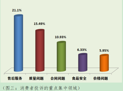 其中:售后服务投诉主要涉及不履行三包义务,因扣除手续费无法全额退款,退款拖延、拒绝退换货,不按约定履行送货或安装义务等纠纷,主要集中在交通工具、服装鞋帽和家居用品类。