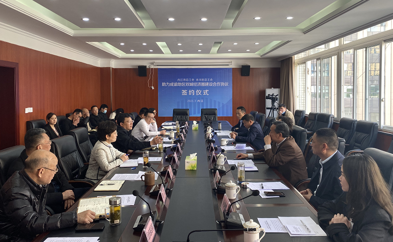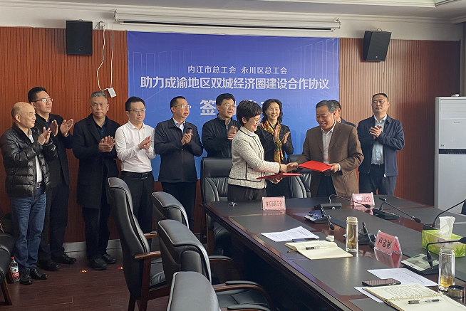 继2020年9月与荣昌区总工会签订合作协议后,3月15日,在内江市总工会会议室内,重庆永川区和内江市两地工会代表齐聚一堂,举行助力成渝地区双城经济圈建设第一次联席会议,签署《内江市总工会、永川区总工会助力成渝地区双城经济圈建设合作协议》。