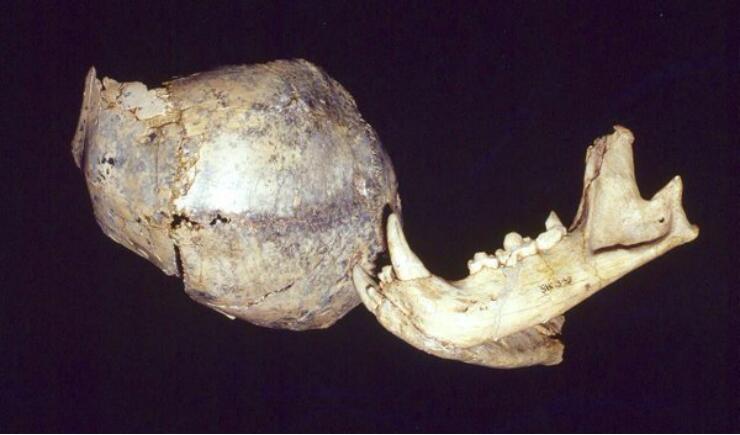 在南非斯旺斯孔洞穴遗址中,外国考古人员在一个洞穴里发现了距今约150万年的南方古猿人和豹子的下颌骨。起初,考古学家推测,这两种骨头埋藏在一起,可能是古猿人的狩猎遗迹。当考古学家拼凑出完整古猿人头盖骨时,在“后脑勺”的位置发现了两颗空洞的小圆孔。“那时候也不可能有子弹,为什么会凭空在脑袋后面出现圆孔?”当考古学家把豹子下颌骨的尖牙放到头盖骨后侧时,发现圆孔大小与豹子的两颗獠牙完全吻合,而这场“远古谋杀案”的结局被翻转,南方古猿人死于野豹之口。