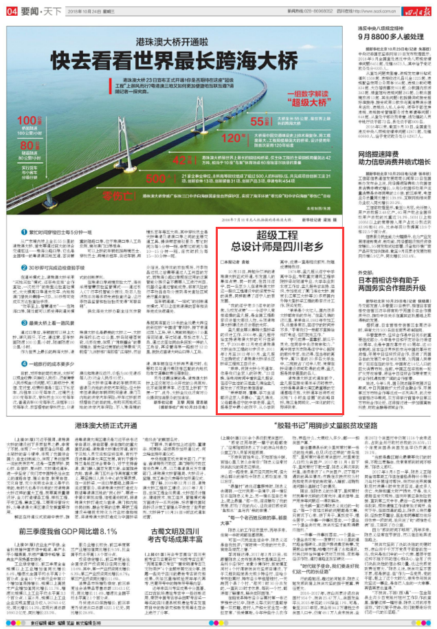 10月23日,跨越伶仃洋的港珠澳大桥正式开通,引发国人为“厉害了我的国”集体点赞。同一时间,在四川遂宁,因为一名家乡人在港珠澳大桥这一超级工程建设中的深度参与,大桥开通的消息同样刷爆了遂宁人的朋友圈。